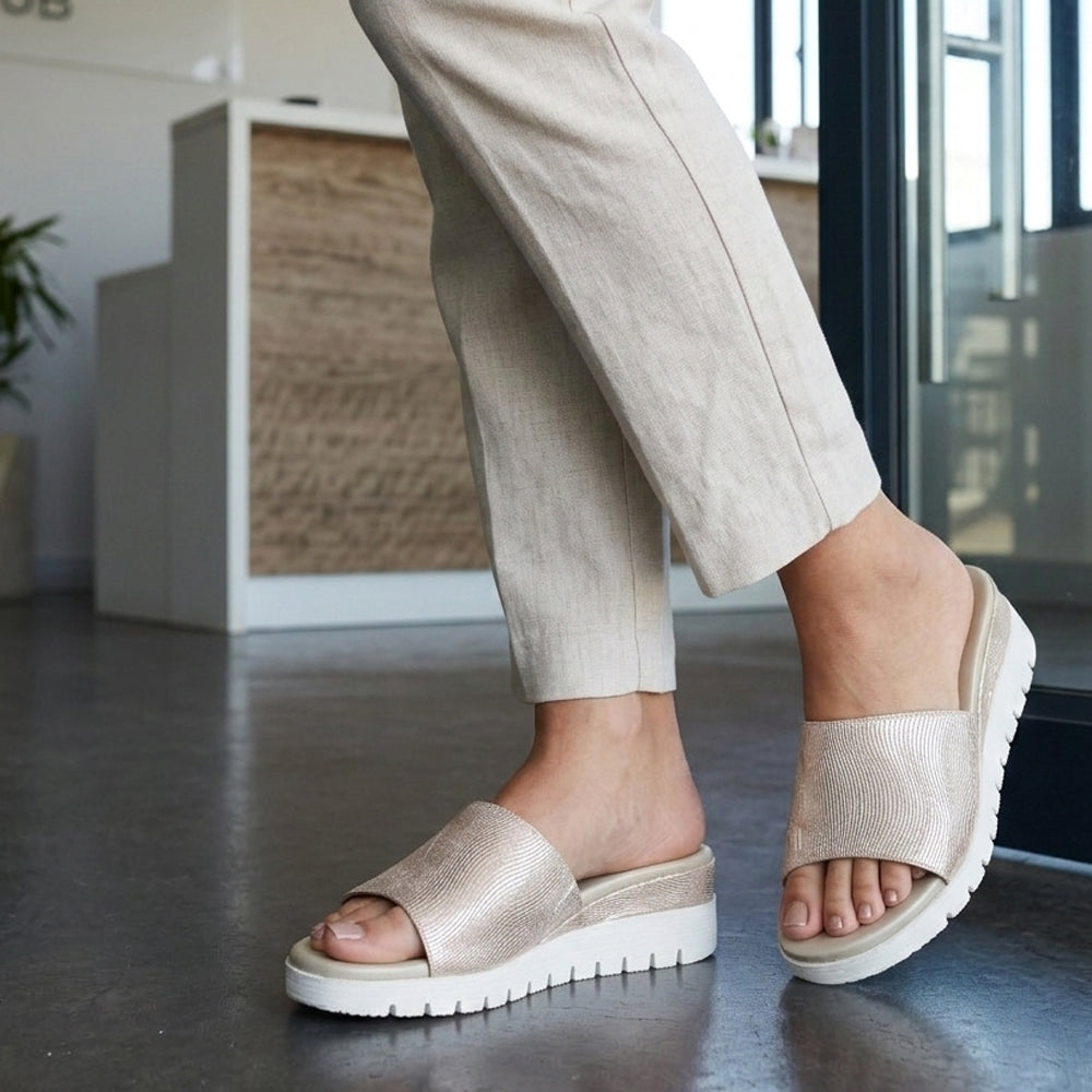 Gold Bronze Glitter Comfort Slip On Wedges M91199