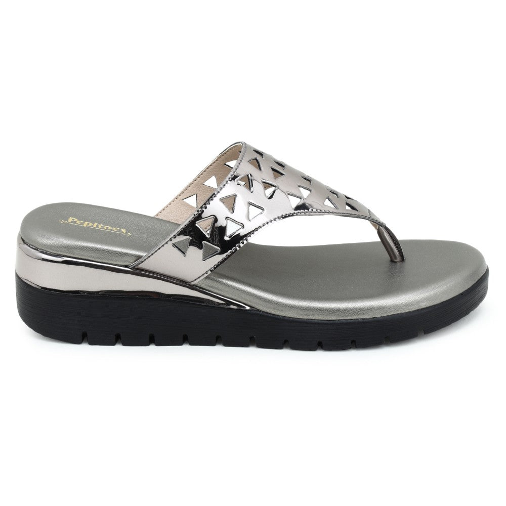 Gun Metal Silver Comfort Slip on Wedges N91242